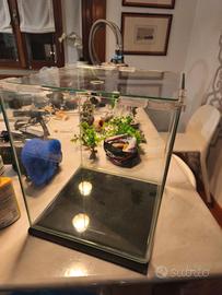 vendo acquario a cubo nano cube 20 o 30 litri da pulire con tutti gli accessori, decorazioni (vascello, rocce, sabbia bianca ....) mangiatoia automatica, luce a led, 3 aeratori, pompa di movimento, termometro, riscaldatore, filtro askoll esterno pratiko 200, tutto funzionante ma usato con alcune incrostazioni (acquario già pulito invece). filtro compatto interno, prodotti vari non so se ancora validi perché hanno qualche anno . NON SPEDISCO