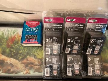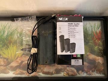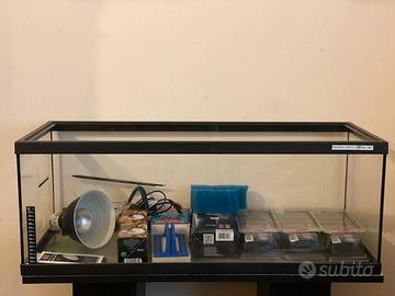 Pezzi vendibili anche separatamente Spedizione solo per i componenti. Acquario con mobiletto aperto, + un ripiano come da foto. Misure acquario: altezza 30 cm. larghezza 79 cm. Profondità 30 cm. Prezzo 80 euro Misure mobiletto: altezza 71 cm. larghezza 79 cm. Profondità 30 cm. Prezzo 40 euro Pompa filtro con scatola e istruzioni e pezzi di ricambio . Prezzo 28 euro N. 12 Filtri per pompa, in regalo il carbone di ricambio. Prezzo 10 euro cadauno Porta lampada Prezzo 19 euro N. 2 lampadine INTENSE BASKING SPOT 50W + 75% INTENSE EXO TERRA Prezzo 12 euro cadauna