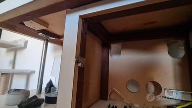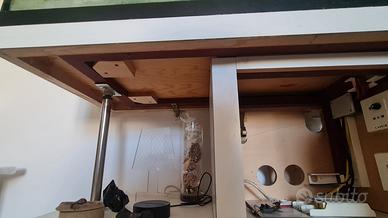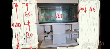 Si dismette acquario in vetro misure come da foto con annesso mobile in buono stato. struttura in.quadrello ferro verniciato e tubi acciaio rifasciato in legno formicaio bianco. L acquario necessita di manutenzione .