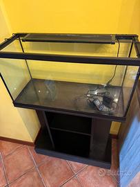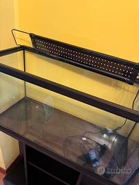 Vendo acquario 100 litri misura 80 x 30 x h 45,5 con luci a led con temporizzatore a 60 € e base rialzata 40 €.