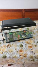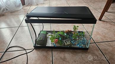 Vendo acquario con pompa per pulire l'acqua e accessori di allestimento : piante ,anfore,ecc.