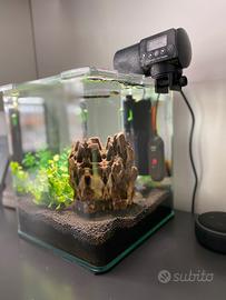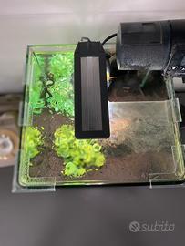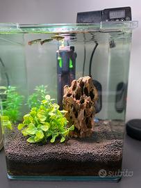 Acquario in vetro completo di luce LED e filtro / cm 25x25x30 / 20 Litri Vendo il mio acquario AMTRA NANOTANK SYSTEM 20 Comprensivo del seguente Allestimento: - Fertilizzante piante artificiali e Brecciolina e Sabbia Nera) - Arredamento come da Foto (Piantine finte + Roccia) - 2 Filtri (Tetra IN 400 Plus montato in Vasca e Filtro originale a cartucce AMTRA) - Lampada originale ma senza supporto (appoggiata al vetro come da foto) - Termostato Interno 25W - Mangiatoia Automatica 200ml a batterie - Ricambi ed accessori vari per la manutenzione ordinaria e straordinaria. IN PRATICA COMPLAETO E FUNZIONANTE IN TUTTO!!! Su richiesta potrei lasciare anche i pesci che sono attualmente in vasca 6 guppy e 4 neon Acquario aperto con angoli arrotondati realizzato in vetro spesso da 5mm Vetro superiore modificato per permettere utilizzo di Mangiatoia Automatica Precise siliconature trasparenti che garantiscono un design semplice, pulito ed elegante. Angoli frontali arrotondati per una visione completa dell’acquario. Dimensioni Vasca : 30 x 30 x 36 cm; 5,1 kg SOLO RITIRO A MANO ZONA BENEVENTO Per altre info o foto contattatemi se realmente interessati!