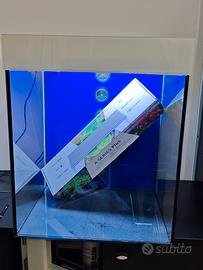 vendo acquario cubo. le misure si trovano nelle foto, e un acquario marino artigianale con tutto il filtraggio dietro. ora l'ho uso come dolce che va benissimo. comunque si può usare sia dolce che Marino.