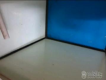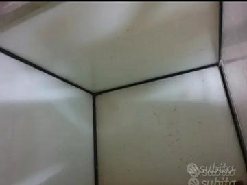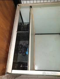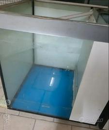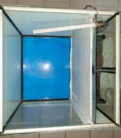Acquario cubo 50 × 50 x 50 cm per 125 litri, con filtro interno a tre scomparti e alloggiamento per termostato e predisposizione coperchio con binari in alluminio, esternamente plastificato con pellicola (necessaria per uso riproduttivo) eventualmente facilmente rimovibile.