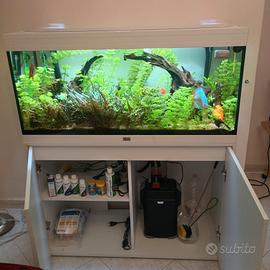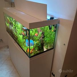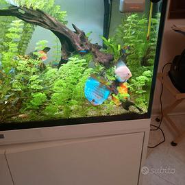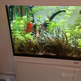 Vendo Causa Spostamento Bellissimo acquario da 200 litri completo di mobile, filtro da 300 litri, piante e pesci che stanno all'interno, tra cui i discus, come si vede in foto, non spedisco, vendo solo in zona, l'acquirente qualora interessato dovrà venire a prenderlo. Contattare solo se realmente interessati tramite telefono