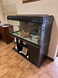 Vendo acquario da circa 400 litri in buone condizioni, completo di mobile abbinato solido e stabile. Ideale per appassionati o per chi desidera un acquario di buone dimensioni già pronto all’uso. Dimensioni (comprensive di mobile): •Larghezza: 125 cm •Altezza: 123 cm •Profondità: 50 cm La vasca è integra, senza perdite e ben mantenuta. Struttura robusta e capiente, adatta ad ospitare pesci di medie e grandi dimensioni o per allestimenti scenografici. La copertura superiore risulta rovinata ma non inficia in alcun modo il funzionamento dell’acquario. Disponibile per visione e ritiro.