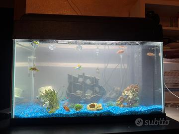 Acquario da 75 lt con accessori cibo e mangiatoia