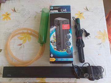 Filtro interno incluso modello FLUVAL U4 (da ripristinare parti di usura periodica: kit filtri 2 spugne, 2 cartucce carbone attivo e canolicchi