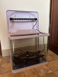 Vendo acquario tutto completo di accessori, di dimensioni 32x20 h26 di circa 16 litri. Vendo per acquisto più grande, la condizione è buona ed è tutto funzionante.