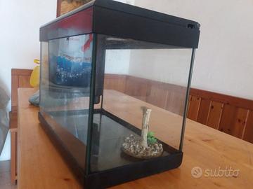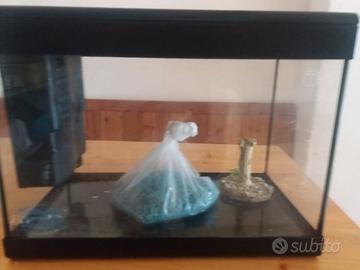 Acquario 40 LT con tutti gli accessori, pompa, riscaldatore, luce led supplementare, terriccio e colonna ornamentale