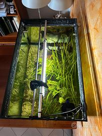 Grande acquario, 200 litri, in buono stato, l'acquario ha circa 2/3 anni, in uso fino a dicembre, eventuale foro sul fondo per sump, al momento è chiuso, insieme all'acquario cedo neon, filtro interno, tronco e spazzola per pulire
