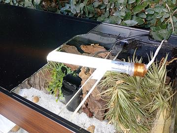 accessoriato con filtro interno con pompa, illuminazione neon led ,sabbia, sfondo in legno mangrovie e piante che vivono di aria e luce .