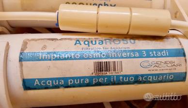 VENDO IMPIANTO OSMOSI PER ACQUA PER ACQUARIO O PER INNAFFIARE I BONSAI, E' UN PO' DI MESI CHE NON LO USO QUINDI NON GARANTISCO CHE LE BOMBOLE VADANO SOSTITUITE CE NE SONO UN PAIO DI RICAMBIO COME SI VEDE IN FOTO, UNA E' SICURAMENTE NUOVA L'ALTRA NON RICORDO, PAGATO 119 EURO PIU' LE BOMBOLE DI SCORTA LA VENDO AD UN PREZZO IRRISORIO SPEDIZIONE