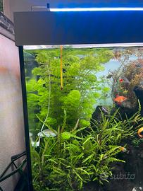 acquario in ottime condizioni, vendo per comprarlo nuovo vendo teca più lampada originale. Inoltre, vendo terra fertilizzante, sabbia piante, rocce, rami /radici inoltre, filtro e riscaldatore.