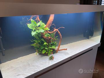 Vendo acquario Juwel 450 LED di colore bianco completo di mobile originale, perfettamente funzionante e in ottime condizioni. L’acquario ha dimensioni 151 x 51 x 66 cm (altezza) con una capacità di 450 litri, ideale per allestimenti di grandi dimensioni. Illuminazione: Sistema di illuminazione originale MultiLux LED con doppia barra LED, inclusa. Filtrazione inclusa: •Tetra EX 1200 Plus – filtro esterno completo di tubazioni, spugne e tutti gli accessori •Fluval FX4 – filtro esterno professionale completo di tubi, materiali filtranti e accessori Condizioni: •Acquario perfettamente funzionante •Vetro in ottime condizioni, come visibile dalle foto •Acquistato nuovo e utilizzato da un unico proprietario Ideale per chi vuole un acquario grande completo di accessori: Riscaldatori, Legni, pietre.. ecc ecc pronti all’uso.