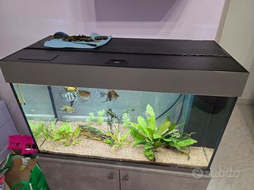 acquario in condizioni impeccabili,qualche lieve segno di uso sul vetro ma in ottime condizioni,capienza 125 lt ,insieme all acquario dò vari accessori e ricambi ,vendo per cessazione hobby,solo ritiro a mano ,non spedisco,prezzo da concordare con e senza pesci