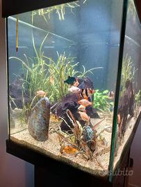 Acquario 125 litri completo di piante, legni, accessori + termometro interno