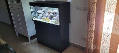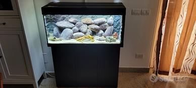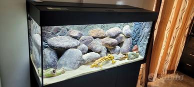 Vendo acquario Juwel Rio 180 modello LED completo di mobile nero, tutto originale, nessuna modifica effettuata alla struttura o al filtro originale Bioflow M. Dimensioni acquario: 101x41cm, H 50cm Dimensioni mobile: 101x41cm, H 73cm L'acquario è dotato di sfondo 3D originale Juwel, è tuttora in funzione ed attualmente è allestito Malawi. Le grandi pietre visibili nelle foto sono state rimosse dal'allestimento, pertanto non sono comprese nella vendita. Nella vendita sono inclusi i seguenti accessori: - pompa ausiliaria di movimento Koralia Nano 1600 lt/h - aeratore LBL ProSilent A200 completo di pietra vulcanica porosa - pompa ad immersione per cambio acqua nella vasca, 12V 10 l/m di portata completa di tubo ed alimentatore - timer per luci ed aeratore - distributore automatico di mangime granulare Insieme all'acquario è compreso tutto l'allestimento visibile in foto a meno delle pietre, inoltre regalo svariati ulteriori accessori come retini, spugne filtro, termometri, mangimi, ecc. Vendo solo in blocco a 290€: non sono interessato a permute e non vendo separatamente acquario e mobile. Solo ritiro sul posto, primo contatto tramite la messaggistica di Subito.
