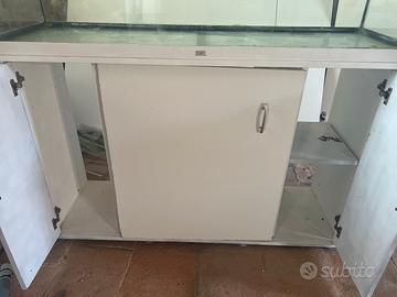 Vendo acquario juwel rio 240. Lacquario e stato modificato e adibito a marino,tolto la cover superiore montato tiranti laterali e centrale,forato vasca per sump,il mobile e stato modificato per alloggiare la sump(nel caso di dolce ci sta anche il filtro esterno. Il mobile era quello originale e stato anche rinforzato. Lavquario e stato svuotato il 12/03/2026,la vasca non perde,e presente qualche piccola righa da calamita ma a vasca piena e invisibile. Includo anche gli scarichi blau con eventuali tubi di salita e discesa. Il prezzo e di 80€ poco trattabili Non spedisco e no perditempo grazie!!