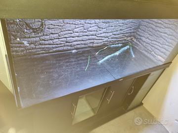 ....acquario da 400 litri completo di mobile in buone condizioni, luci led, vano per sistemazione impianto filtraggio, e sfondo come si vede in foto, ....in più c'è la vaschetta centrale fatta su misura x varie esigente....
