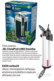 - Filtro esterno JBL CristalProfi e1902 Greenline, silenzioso, potente (fino a 1900 l/h, consumo 36W), con materiali filtranti inclusi e sistema di avvio rapido.