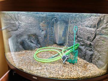 juwel trigon 350 completo di filtro interno originale e supporto. presenta qualche graffio sul vetro frontale. Una delle due plafoniere è da sostituire Sfondi tridimensionali sulle pareti laterali.Ovviamente è da pulire perché fermo da qualche mese. Non spedisco quindi l'acquirente dovrà organizzarsi per il ritiro.