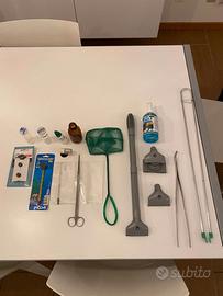 Inoltre vari oggetti di arredo e di manutenzione/cura dell'acquario.