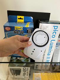 Kit completo con vasca, coperchio in vetro, supporti per coperchio, filtro a cascata e luci regolabili, tutto del marchio BLAU. VASCA Cubic Panoramic 28 (misure 40x25x28cm). Capacità: 28 litri Angoli frontali arrotondati. Dotata di supporti e coperchio in vetro. FILTRO a cascata FM120 Non porta via spazio in vasca in quanto è appoggiato al vetro esternamente. Getto regolabile. Con materiale filtrante incluso FILTRO SERA X-EDGE300 Interno, angolare. Getto regolabile con materiale filtrante incluso LUCE Pico Lumina 11 RGB+W (regolabile sia in intensità che come colore, flessibile) -Temporizzatore -Termoriscaldatore 25w AMTRA -1 legno -1 roccia -1 termometro