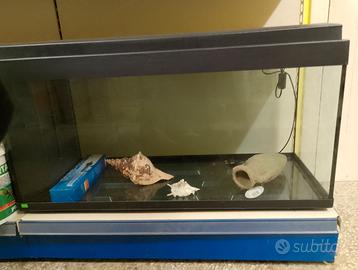 Vendo acquario nuovo mai usato . Misure 100×40 altezza 55 dotato di filtri ,riscaldatore e luce