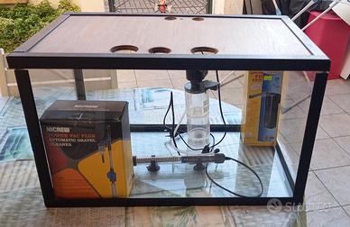 Vendo acquario con annessi accessori (un filtro nuovo mai usato, un filtro usato, un aspiratore per pulire, un riscaldatore). L'acquario misura 60 (larghezza) x 35 (altezza) x 35 (profondità). Sono circa 60 l di acqua. No spedizione. Prezzo non trattabile, ritiro sul posto.