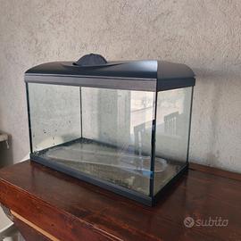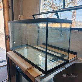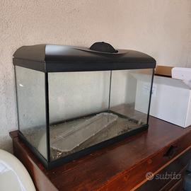 Vendo due acquari, uno da 100 litri circa privo di copertura e che presenta dei leggeri graffi sui vetri e uno da 60 con vetri messi molto bene e con la copertura alla quale deve essere sistemata una cerniera ma per il resto completa di paratia proteggi luce e apertura per mangiatoia automatica. Disponibile anche cassetta filtri e pompa per il filtraggio. Prezzo di realizzo inteso per la coppia, li vendo perché non so dove riporli in casa. A mio parere ottimi per iniziare questa passione. Quello da 100 ha le misure 80x30x h35 circa, quella da 60, 60x30xh35 circa. NON spedisco.