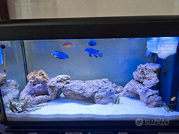 Viene venduto comprensivo di pesci, pietre, nursey, accessori di ricambio per filtro e 10kg di sabbia inerte nuova. Inclusa ovviamente la base in legno, anch'essa tenuta in maniera maniacale.