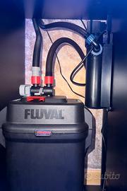 Acquario marino da 350 litri (120x50x65) con mobile, maturo da 4 anni. Completo di tutta la tecnica: Schiumatoio Tunze 9012, 4 pompe di movimento ( 2 Hydor Koralia 9000 l/h + 2 Jebao MOW 9000 |/h), 2 riscaldatori, 2 barre easy led 2.0 (acquistate l anno scorso) alba e tramonto. Completo di vivo: 50 kg di rocce vive, vari coralli Sinularie rosa e verde, Sarcophyton, Rhodactis, Zoanthus. Gamberetto Lysmata, coppia di ocellaris riproduttiva in simbiosi con I anemone, Naso lituratus, lumache e paguri Assieme anche tutta l'attrezzatura di manutenzione: integratori e test, fotometro per la salinità, fotometro Hanna checker test fosfati, vari prodotti e mangimi per pesci e coralli, canistri da 20lt, 1 filtro esterno Pratiko 400 (per carbone attivo e resine) e lampada UV, 20 kg di sale Tropic Marin, rabbocco automatico Jebao.