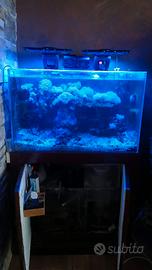 Acquario marino dimensioni 80x50x40, con pietre naturali, coralli, lampade, mobile e macchinario interno. Da ritirare sul posto.