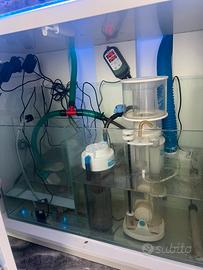 Vendo acquario Marino avviato da qualche mese, con schiumatoio deltasec, varie pompe di mandata e riprostino livello, tutto connettibile tramite app, l aquario è gia avviato e ha alcune specie gia inserite. L acquario è gia stabilizzato e ha la sua dosometrica gia impostata, corredato di inpianto osmosi e una valaga di prodotti vari. È perfetto per chi vuole sviluppare delle specie di coralli particolari o altre cose. Misure acquario 90x90x50 con coperchio correlata e mobiletto il mobiletyo Misura 90x50x70 All interno dell acquario ci sono 3 pagliaccio di cui uno scuro, una damigella coda gialla, jna bavosetta, un gamberetto 2 lumache di mare e due lumachine di mare Per trasporto e montaggio possiamo accordarci. Prezzo leggermente trattabile. Valuto permute