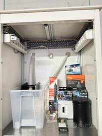 - Mobile alto 140 cm su ruote/piedi, struttura in profilati strutturali in alluminio, ripiani in inox e verniciature a polvere. Prese multiple e canaline passacavo, supporti posteriori per appendere lampade, luce vai sump, incluse cerniere per sportelli.
