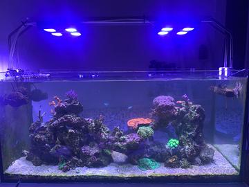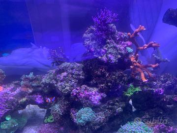 Vendo acquario marino in perfette condizioni con pesci e coralli, vendo per transloco casa, ci sono coralli sps,lps e molli.