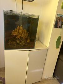 Vendo acquario marino 3 lati in extrachiaro 45x45xh50 cm, completo di tutto, pompe movimento, pompa risalita, rabbocco automatico, sump 45x45cm, schiumatoio, plafoniera led Roleadro. Compresi circa 15kg di rocce vive un ocellaris e alcuni coralli molli. €150