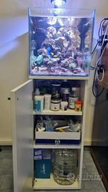 Mini reef acquario marino 50x40x40 (80lt con sump superiore. Vetro cextrahiaro (tutto acquistato due anni or sono) - Mobile dedicato con due ripiani - Pompa di risalita (quasi nuova - Pompa di movimento quasi nuova - Riempitore automatico - termostato NO lampada