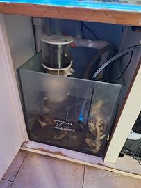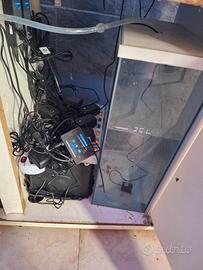 vendesi tutto in blocco acquario marino 300 litri vetro chiaro con pesci rocce coralli 3 pompe schiumatore sump vasca e pompa di rabbocco due luci alba e tramonto wifi due ventilatori riscaldatore