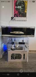 Shallow 90x50x25 completamente in plexigass compreso di scarichi sump mobile 150 Lt, volendo disponibile schiumatoio vertex 150, rabocco automatico tunze, plafoniera keloray AL200, pompa di Risalita qpet 6000, pompa di movimento vortech mp10, acquatronica deluxe completo, impianto osmosi 5 stadi.