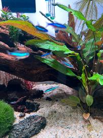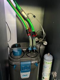 Per passaggio al salato vendo acquario 80x38(altezza)x40 cm in vetro 8mm extra-chiaro. La vasca e tutta la tecnica è tutto stao tenuta in modo maniacale ed è come nuova, non presenta danni o strisci, i siliconi sono immacolati. La vasca viene venduta tutta insieme come da foto ed è composta di: - Vasca - Mobile da acquario colore antracite (non ricordo la marca ma era stato pagato 249 euro) - Filtro Oase Biomaster thermo 250, con allminterno 1 kg di seachem Matrix, spugne originali, - riscaldatore Oase inserito nel filtro. - set completo CO2 con diffusore INLINE e due bombole (vedi foto) - pompa dosometrica a 4 canali CHIHIROS (ancora in garanzia) - Plafoniera CHIHIROS RGB VIVID MINI da 75 W - impianto di tuberia esterna in pvc fatto ad arte con possibilita di innestare senza perdote le Lillypipes in vetro. - led notturno In vasca: piante vive, substrato ada, ghiaia ada, legno naturale enorme (pagato al tempo 130 euro), pietra lavica, pesci ecc.. Chi è un minimo appassionato sa che al nuovo con questi soldi compra la vasca e la luce 😅