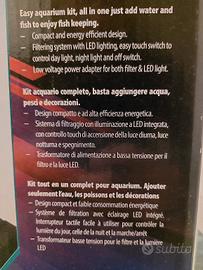 acquario usato per pesci con sistema di filtraggio e luce LED.