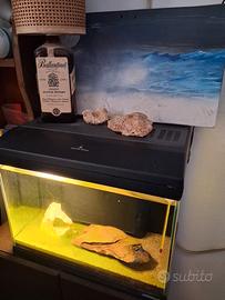 Vendesi acquario marca Mirabello litri 35 top della gamma acquistato euro 120 qualche anno fa, misure 42 largo x 26 profondo x 35 alto. Si trova nelle condizioni di cui in foto. Attualmente con fondo in sabbia e qualche pietra con all'interno lumachine rosse e termometro. Ecosistema già attivo. Viene venduto con pompa e riscaldatore da ripristinare. Si vende unitamente a materiale per la gestione dello stesso acquistato e non utilizzato. Si presta ottimamente per acquari per piccoli pesci, o come vasca parto per fare crescere i piccoli avannotti appena nati. Prezzo leggermente trattabile viste le condizioni.