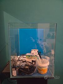 - Vasca in extra chiaro misure 50x50x60h in ottime condizioni. Il volume d'acqua una volta riempita e' 150 litri senza allestimenti vari. € 160 - Mobiletto forato posteriormente con un ripiano interno per materiale elettrico e mensolina laterale esterna fatta da me.( si puo' anche togliere). 25,00€ - Vaschetta in vetro per rabocco acqua d'osmosi. Una volta riempita porta sui 25/30 litri. Entra perfettamente sul fondo del mobiletto. €15,00 Vendo anche separati, prezzi scritti vicino la descrizione. NO SPEDIZIONE, RITIRO A MANO SU ROMA