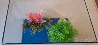 Acquario 30x18x20 completo di filtro, 2 piantine,pompa per svuotamento e una scatola di carbone attivo per il filtro.