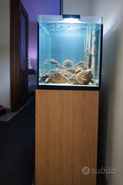 Acquario in vetro completo e biologicamente maturo, avviato da anni. Ideale per ciclidi rocciosi o per chi cerca un allestimento ad alta stabilità biologica e bassa manutenzione.