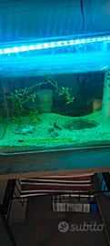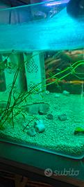 vendo due acquari uno da 35 litri completo di luce termostato filtro accessori pesci misti e piante vere come in foto e l'altro da 17 litri completo di filtro luce e pesciolini Guppy nati da 6 mesi come in foto entrambi al prezzo incredibile di 70 leggermente trattabili