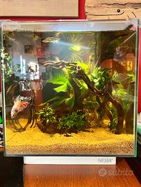 Vendo vasca Newa 28 litri con coperchio e base bianchi + filtro di serie (cartuccia carbone da sostituire) + neon di serie + termo riscaldatore Misure e specifiche tecniche nelle immagini allegate NON IN VENDITA : Arredi, legni, rocce (eventualmente su richiesta) ; Piante ; Pesci (Non spedisco)