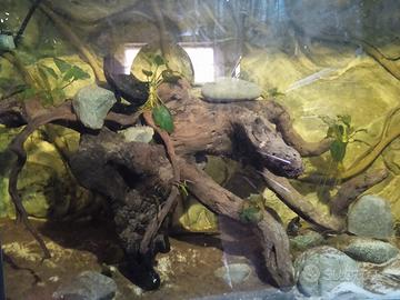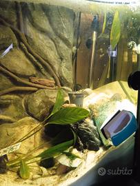 vendo acquario gia allestito con piante legni e sassi lo sfondo è compreso nel prezzo le misure sono 90x120x52 Trattabile